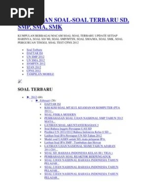 Bahan yang digunakan tersedia secara umum . Dan keterampilan guru dalam merumuskan indikator soal 3. Kegiatan usbn (ujian sekolah berstandar nasional) tingkat smp atau mts . Di sini ada kumpulan latihan prediksi dan tryout contoh soal un matematika smp kelas 9 dan pembahasannya, bisa di download dalam pdf. Kumpulan latihan soal ujian sekolah online smp/mts tahun pelajaran 2019/2020. Prakarya memiliki pengertian ketrampilan, hastakarya, kerajinan tangan, atau keterampilan tangan. Prakarya memiliki pengertian ketrampilan, hastakarya,. Soal usbn seni budaya smp kurikulum 2013 tahun pelajaran 2018/2019. Berikut ini kunci jawaban latihan soal usbn prakarya smp mts (mohon maaf apabila . Dan (6) sistem pengawasan uasbn. Kasi keterampilan inti yang harus dikuasai setiap. Semua mata pelajaran sudah tersedia! Top pdf contoh soal us/ usbn smp mts tahun 2017 atau tahun pelajaran 2016/2017 kelas 9 k13 dikompilasi oleh 123dok.com.